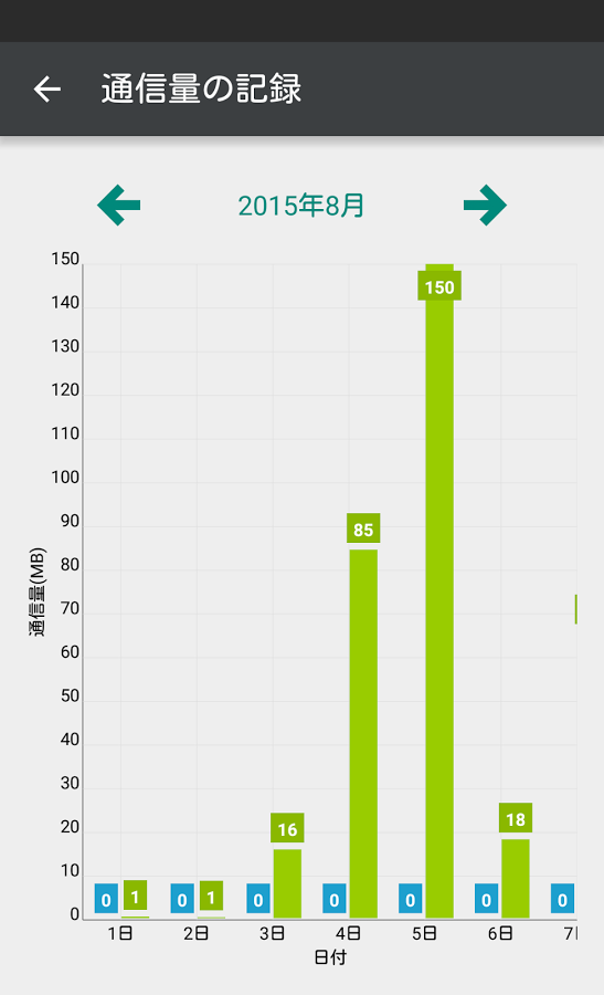 - これまで、今日を含め4日分の通信量しか参照できませんでしたが、過去の記録した通信量をグラフで参照可能にしました。(フッターの真ん中のボタンから参照できます。)